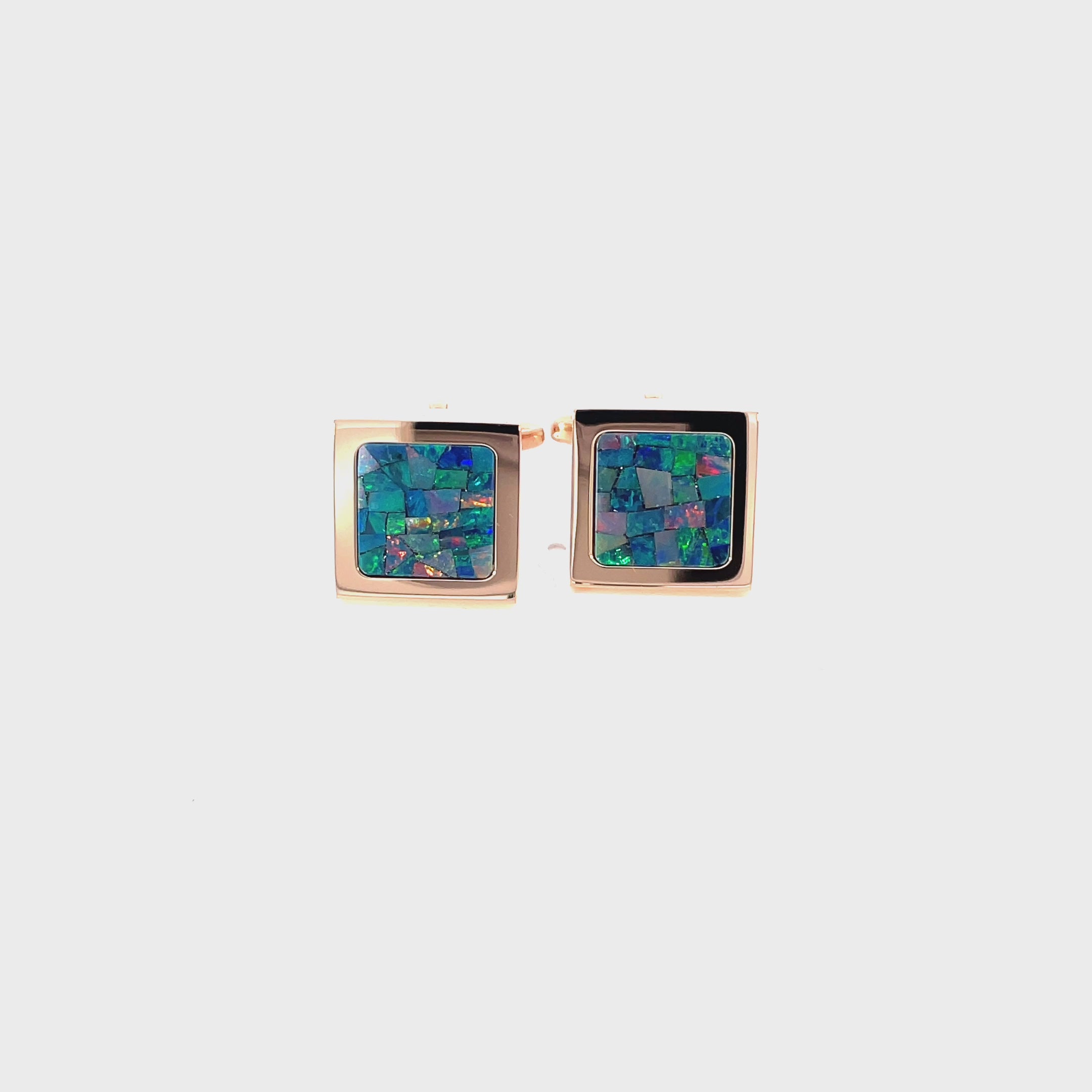 Australian Premium Square Opal Cufflinks (Green Rose Gold)
