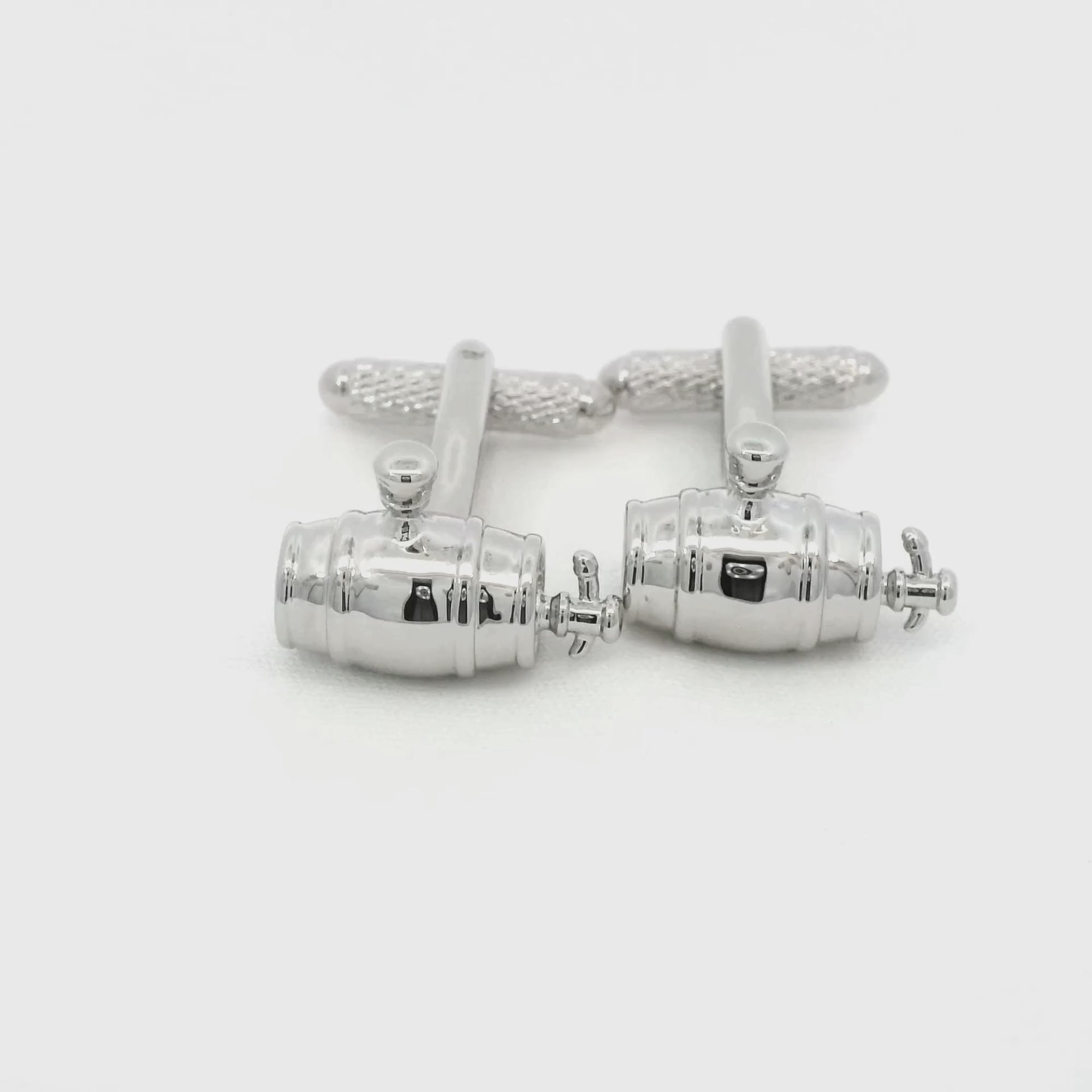 Introducing our Barrel or Cask Cufflinks: a symbol of refined taste and tradition. These beautiful plated cufflinks feature a miniature of either a barrel or a cask in silver colour, they will for sure add character and charm to your ensemble. Perfect for a brewer, publican, waiter, barman or anybody that serves food or drink. Elevate your style with our Barrel or Cask Cufflinks and make a statement wherever you go.