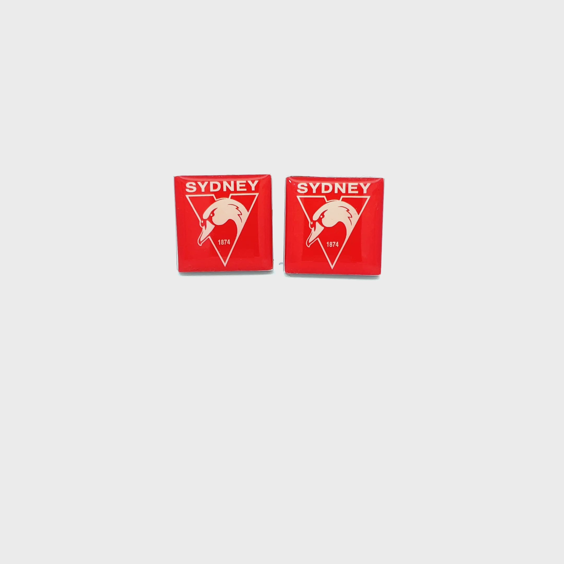 The Sydney Swans Football Club has been one of the most successful Australian Football League clubs of the past several decades. Not missing the finals in consecutive seasons since 1995, the Bloods are the class of the AFL and defending Premiership Champions. These beautiful silver Rhodium and colored enamel cufflinks mimic the Swans’ signature Guernsey look.