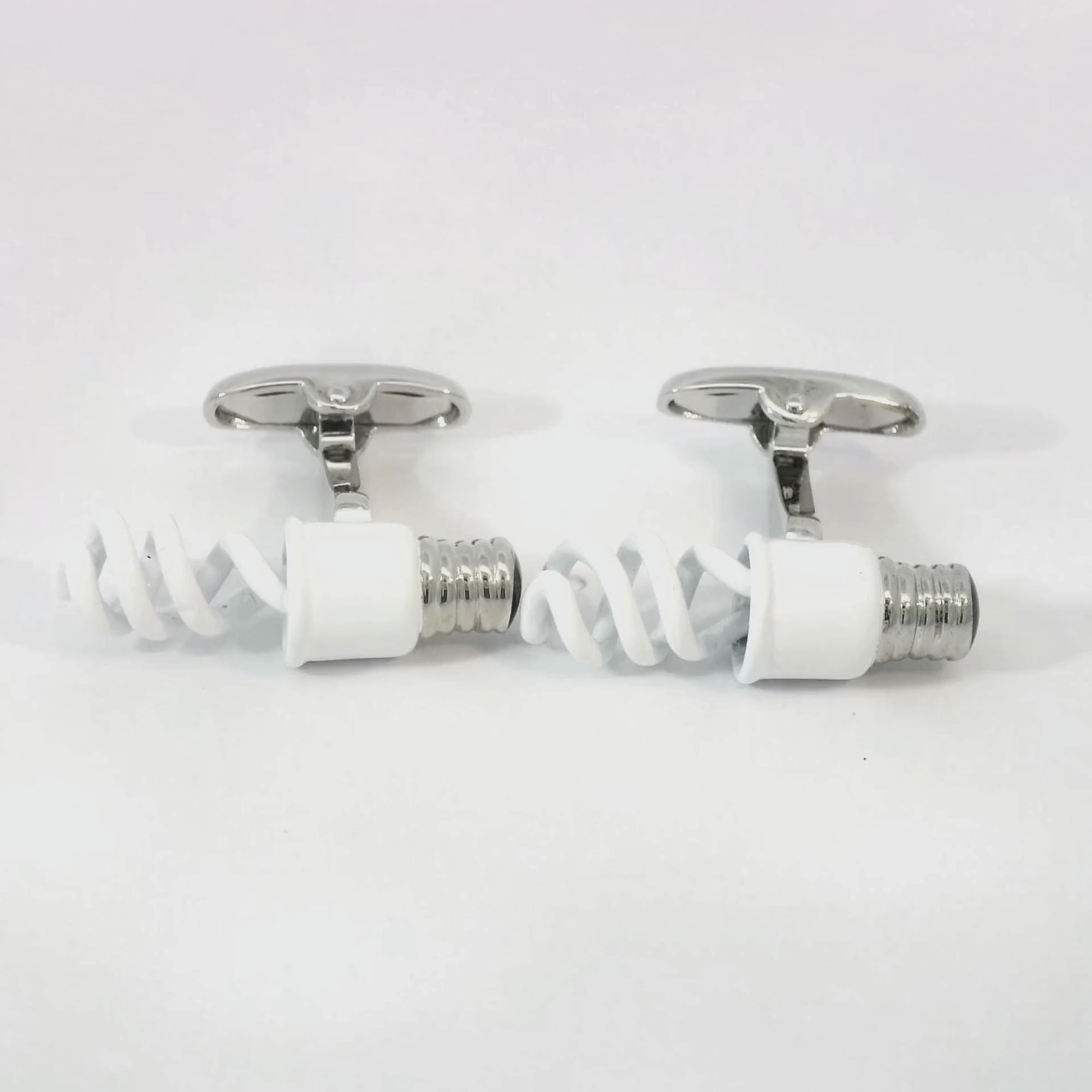 Illuminate your style with our Eco Light Bulb Cufflinks, a whimsical and creative accessory for the modern gentleman. These cufflinks feature miniature replicas of light bulbs in white enamel and silver details. Each cufflink embodies the spirit of innovation and creativity, making it the perfect conversation starter for any occasion.