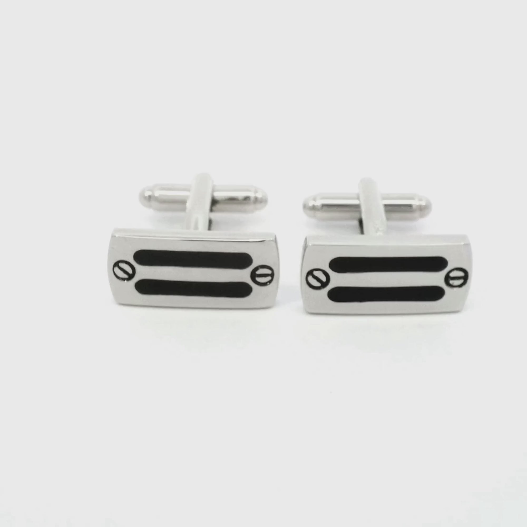 Introducing our Executive Brake Pedal Cufflinks, a sleek and unique accessory designed for the discerning gentleman with a passion for automotive elegance. These cufflinks feature two black enamel lines with a fake screw finish at the edges. Whether you're a car enthusiast, a racing aficionado, or simply appreciate the fine craftsmanship of automotive engineering, these cufflinks are sure to make a statement.