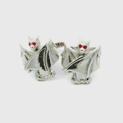 Introducing our Folded Wing Bat Cufflinks with Red Crystal Eyes, a striking accessory that combines gothic charm with luxurious detailing. These cufflinks feature meticulously crafted bats with wings elegantly folded at their sides and each bat is set with dazzling red crystals.