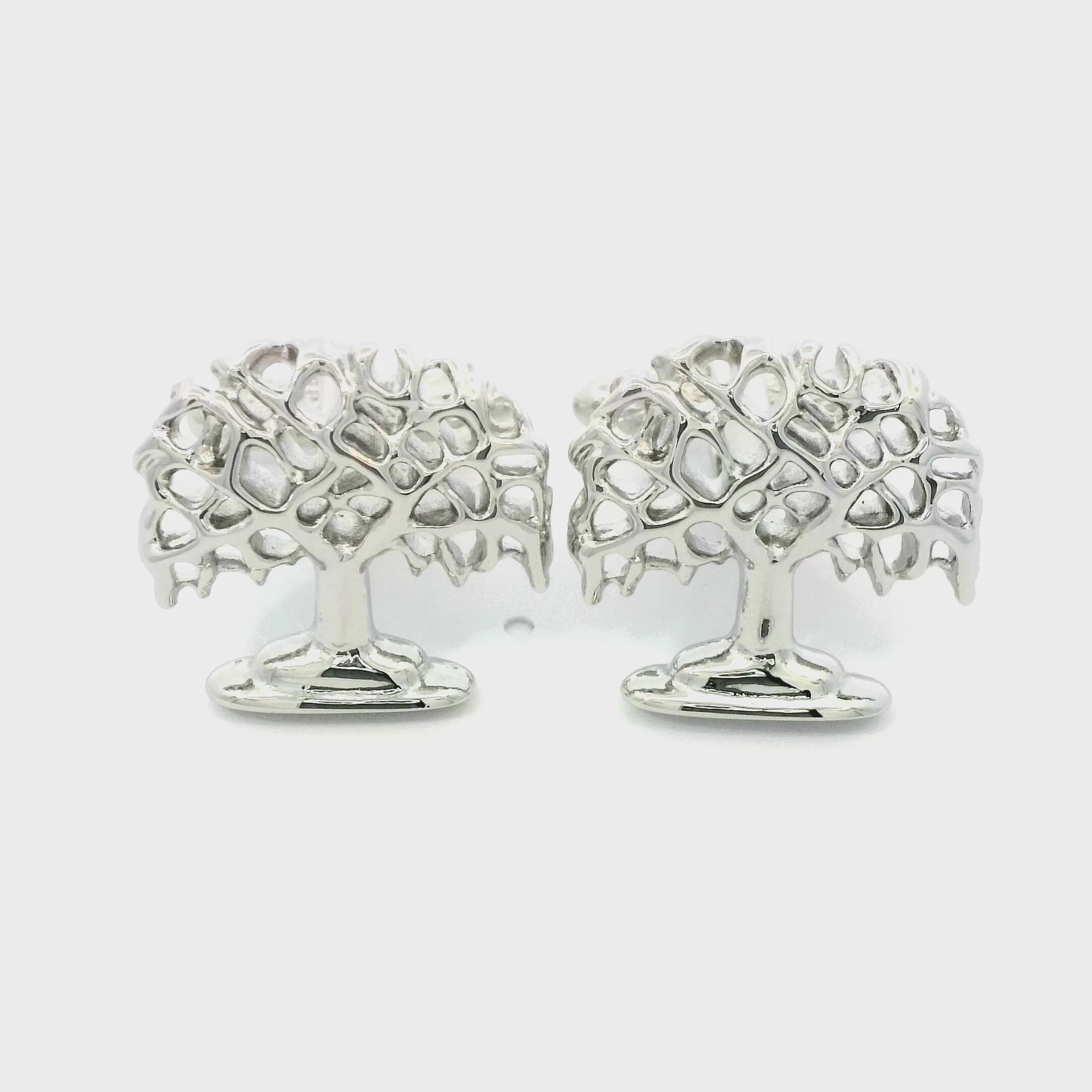 Oak Tree Cufflinks - or perhaps the Tree of Life? Evoke a sense of timeless strength and growth with our Oak Tree Cufflinks. These meticulously crafted accessories feature a delicate yet intricate oak tree design, symbolizing endurance and wisdom. Finished in shiny rhodium plating.