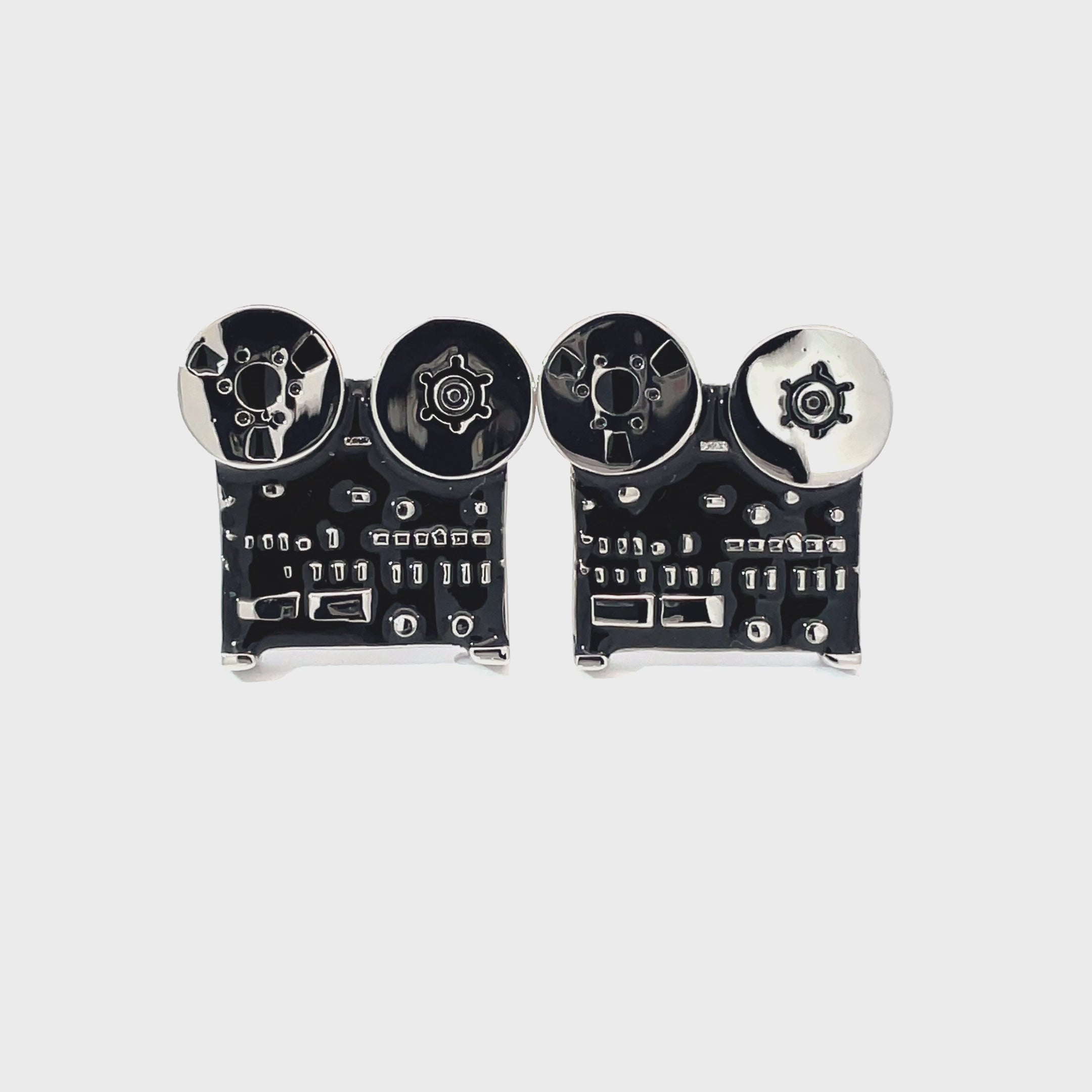 Turn up the nostalgia with these striking cufflinks inspired by vintage reel-to-reel tape recorders. Featuring polished silver reels and a black enamel body, they’re the perfect hit of old-school cool for music lovers, sound engineers, or anyone who appreciates retro tech with timeless charm. Finished in enamel and shiny rhodium plating.