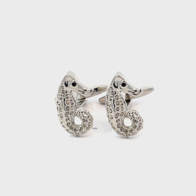 Add a touch of oceanic sparkle with these playful Sea Horses Cufflinks. Featuring crystal-studded bodies and a charming curved shape, they’re perfect for marine lovers, scuba divers, or anyone who wants a little seaside style at their sleeves. Finished in shiny rhodium plating.