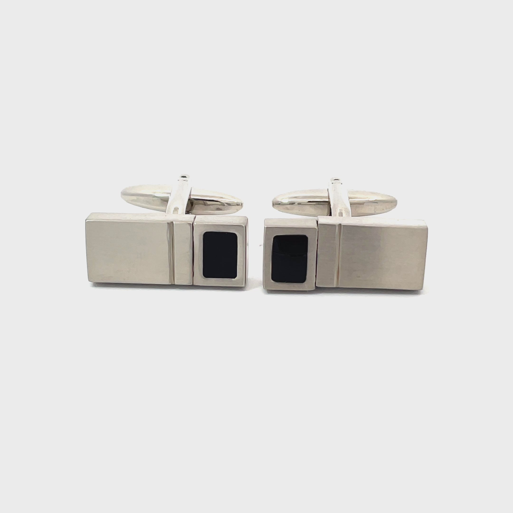 A modern take on monochrome, these With a Twist Cufflinks in black and white feature a clever rotating design that flips between two bold enamel colors. Sleek and versatile, they add a smart finishing touch to any outfit. The coloured panels on these cufflinks turn - so they can both be black or both be white - or one of each. Finished in brushed rhodium plating.