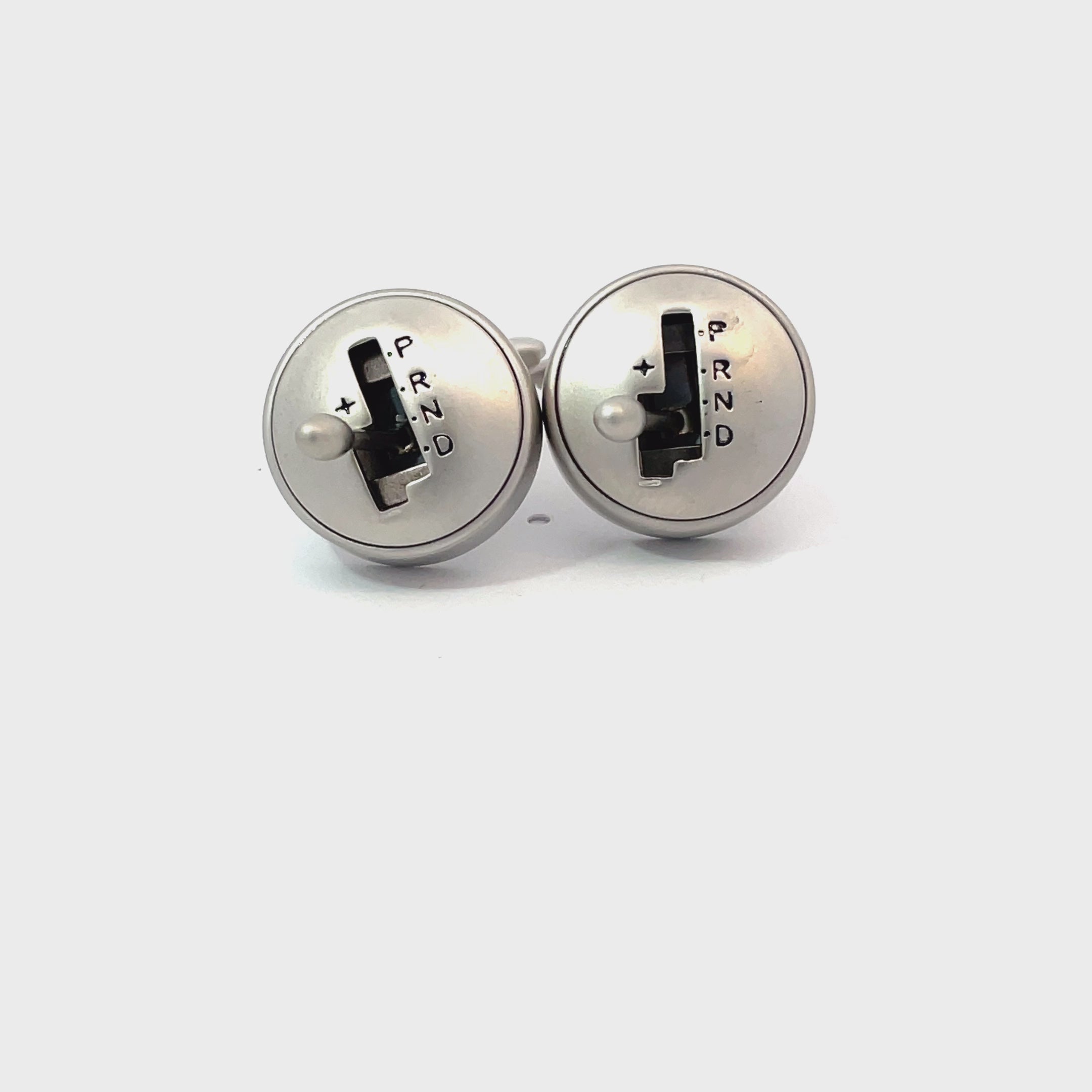 Shift your style into high gear with these Automatic Gear Shift Cufflinks. Featuring a miniature gear selector design, they're the perfect accessory for car lovers and speed enthusiasts looking to add a mechanical edge to their outfit. Finished in matte rhodium plating.